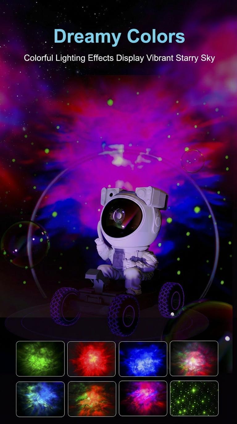 - [An Amazing Present for Kids & Adults] If you're not sure what to get your family or friends as a present, this space projector is ideal for the holidays (Christmas, Valentine's Day, birthdays, etc;); Whether you're a kid who loves stars and planetariums or an adult who just wants to relax, who wouldn't want to have this adorable astronaut galaxy light? And who wouldn't want to fall asleep under a starry sky?