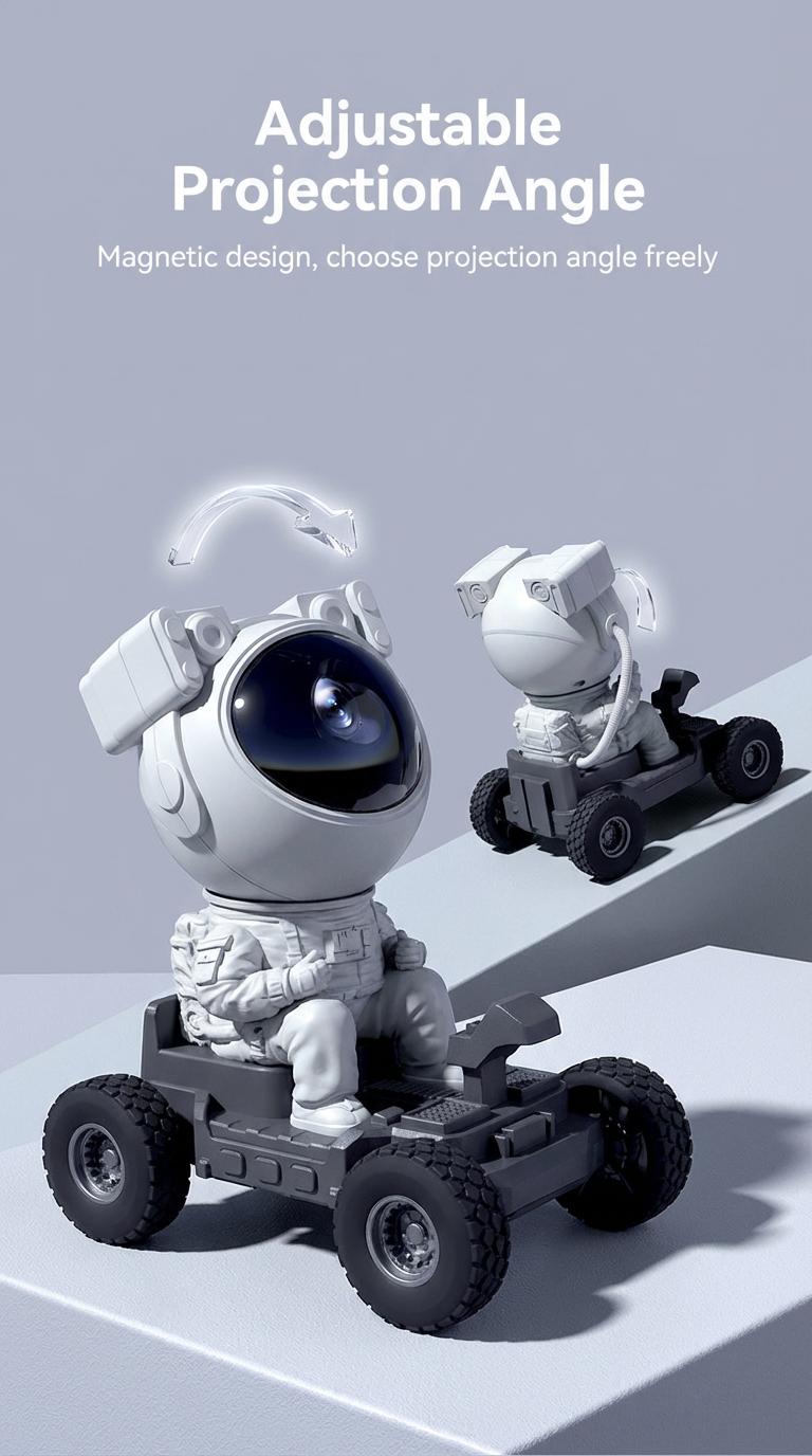 - [Projection Angle Adjustable] This night light starry projector is designed to look like an astronaut, and the astronaut's head is magnetically connected to the body for easy adjustment of the nebula projection angle; In addition, the moon base is removable and the arm can also be posed, which makes it not only a galaxy star projector but also a good-looking decorative ornament.