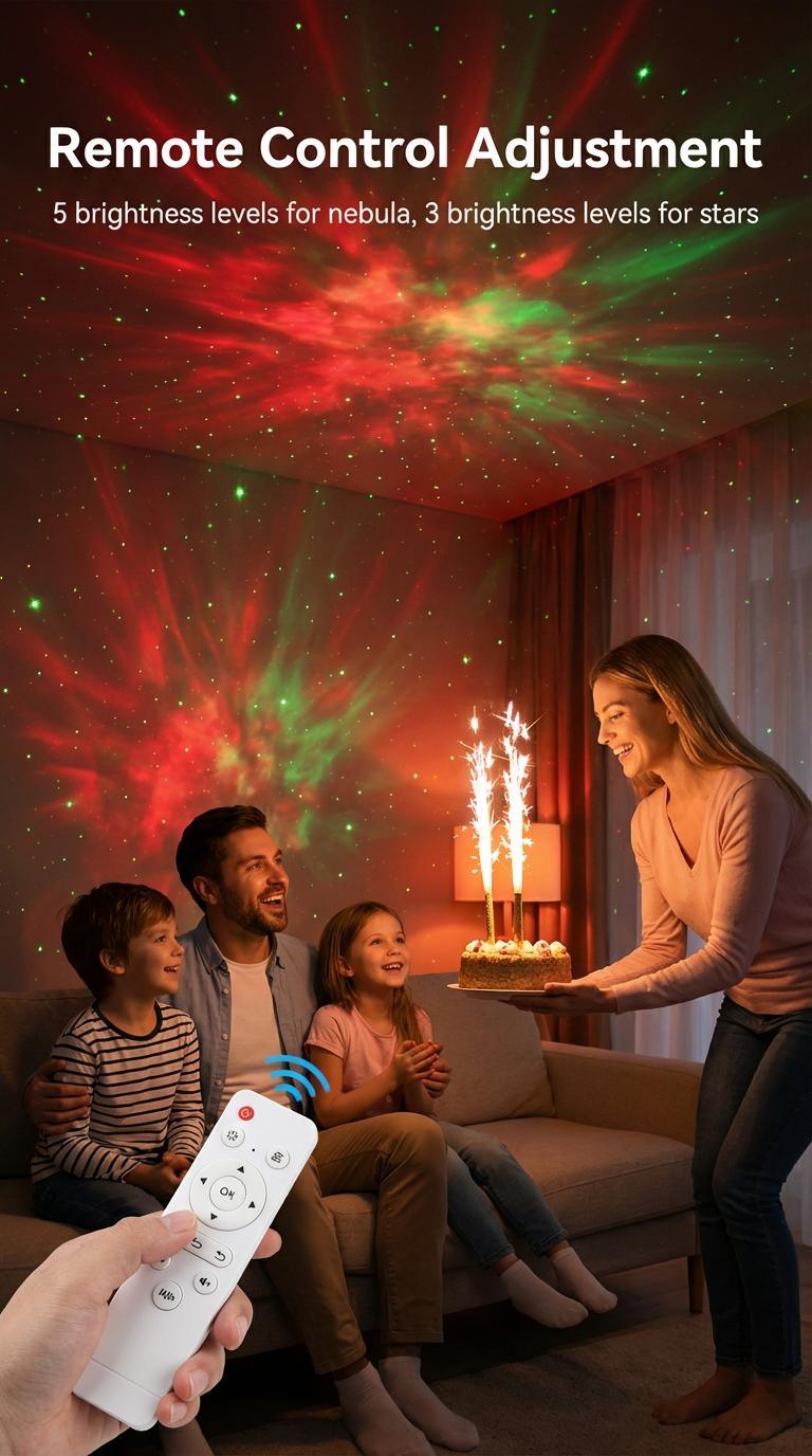 - [Remote Control & Auto-off Timer] This starlight projector with timer and remote can adjust the brightness, rotation speed and the breathing rate whatever you like. Besides, you can set the timer to 45 or 90 minutes, in which case the led star lights projector will automatically turn off when you fall asleep under a starry sky.